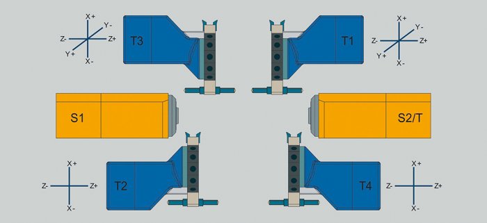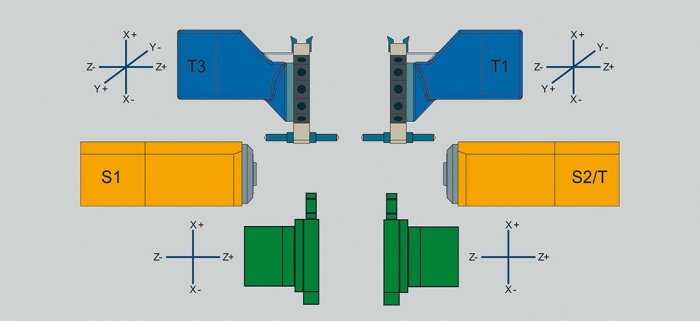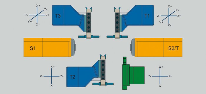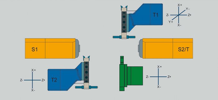 - QUADREX: Čtyři nezávislé revolvery s dvěma osami Y, umožňující simultánní obrábění až čtyřmi nástroji.